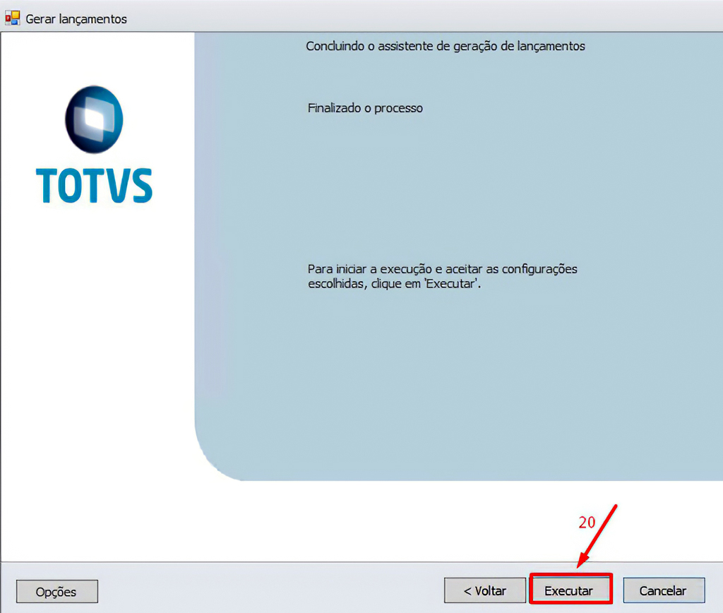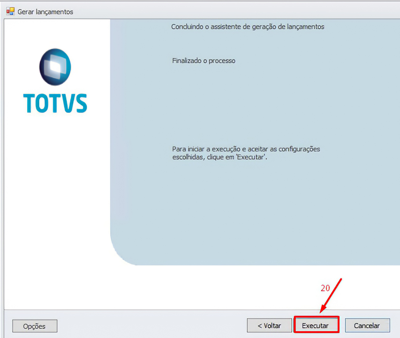 Execução do processo de geração de lançamentos em lote por meio de consulta SQL: