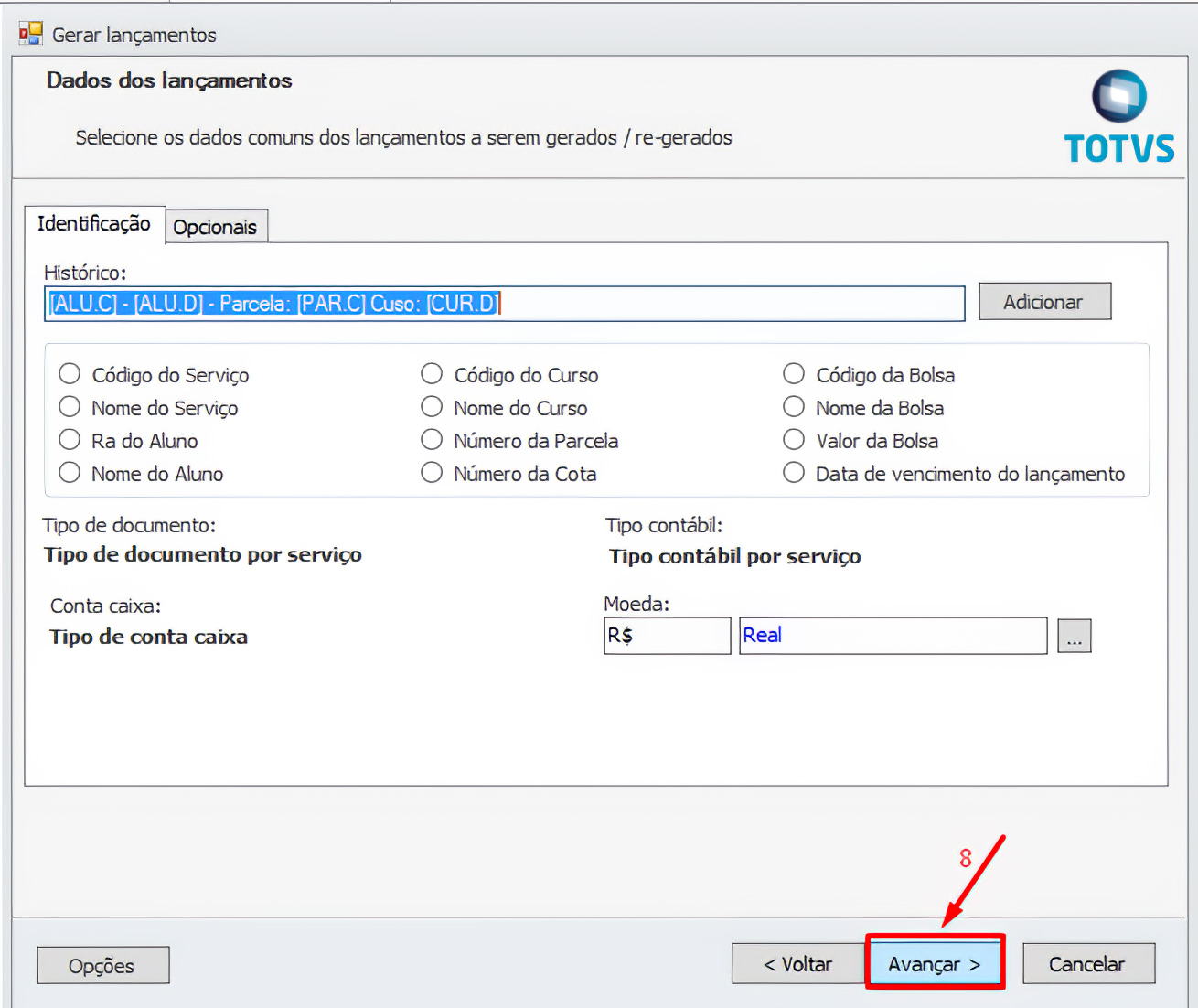 8. Clique em Avançar para dar continuidade ao processo de geração.