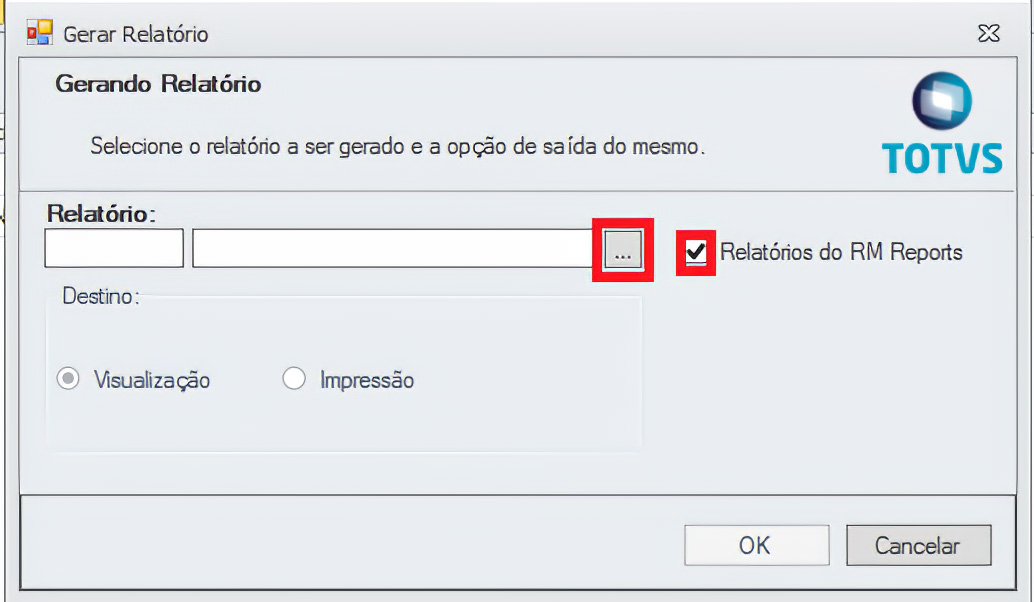 4. Selecione a opção Relatórios do RM Reports e clique nos três pontos.